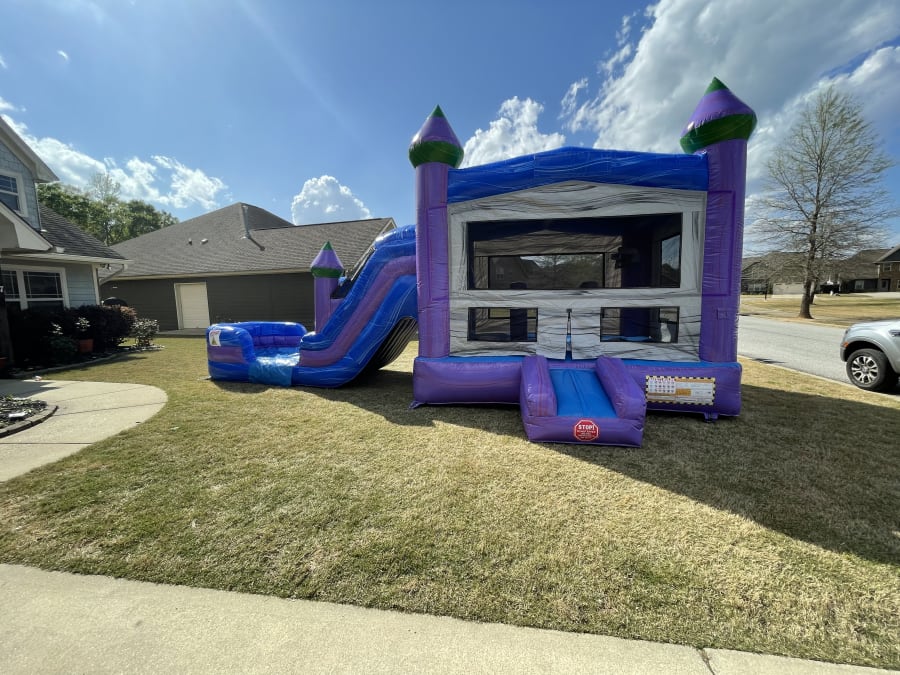 Make a splash at your next gathering with the Royal Combo available for wet use at just $285. To bring this fantastic attraction to your event], reserve your Royal Combo with Dual Lane Slide today!